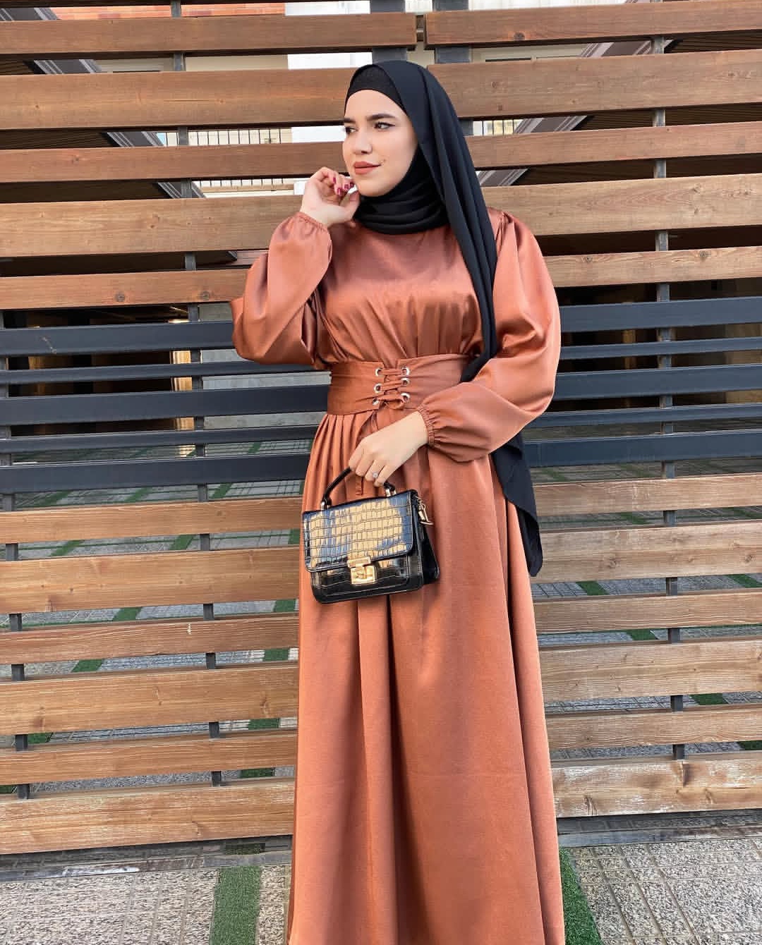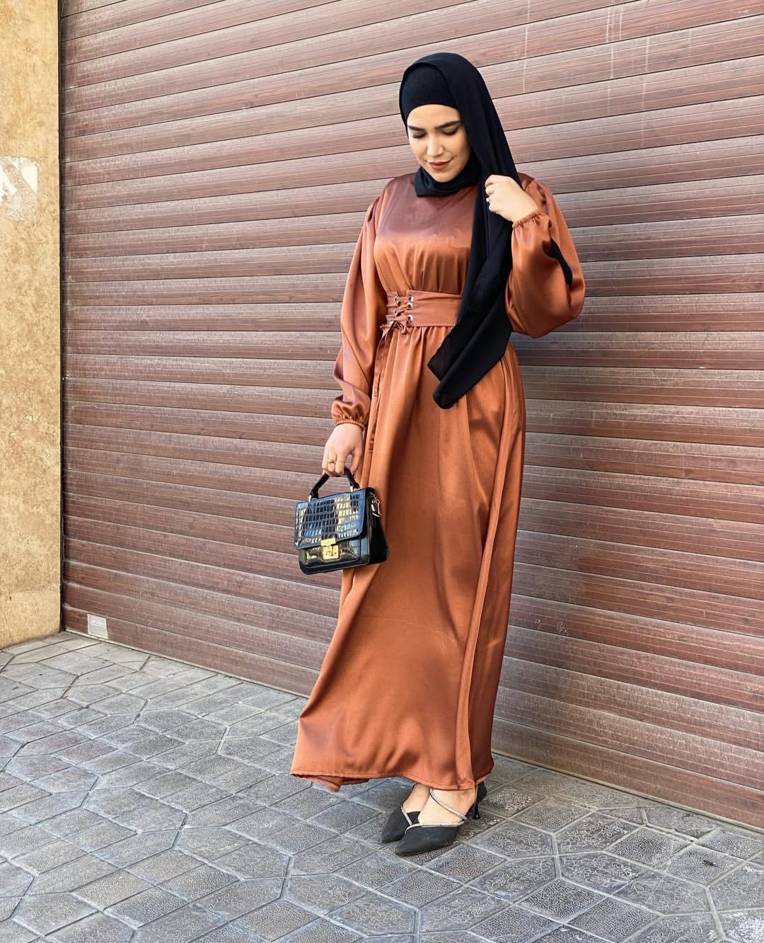 پیراهن بلند ساتن شنی رنگ خاص و کمیاب